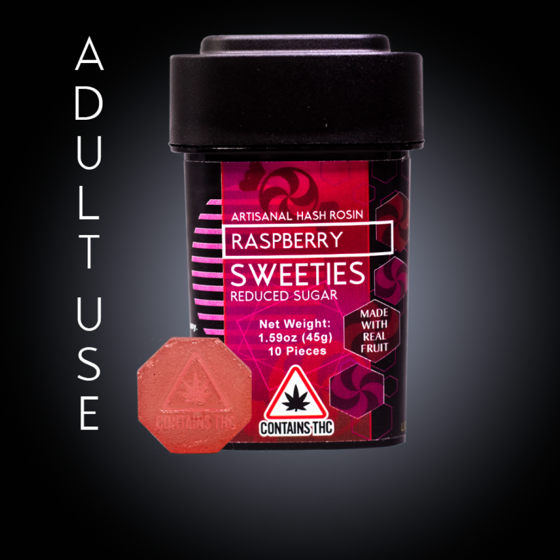 Treat yourself to a burst of sweetness with our Raspberry Sweetie, infused with 100mg of hash rosin. A burst of juicy sweetness that captures the essence of perfectly ripe raspberries!