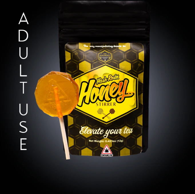 Savor the magic in every stir with our Honey Stirrer. A unique duo of hash rosin & honey, infused with 20mg of hash rosin. A golden potion that combines the sweetness of honey with the comforting warmth of cannabis, making each swirl a moment of enchantment. Two lollipops per pack.